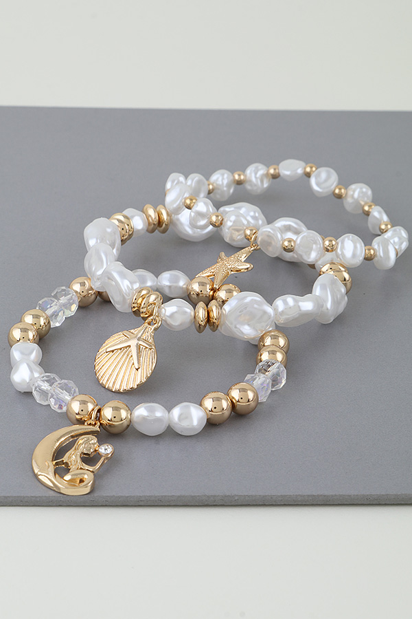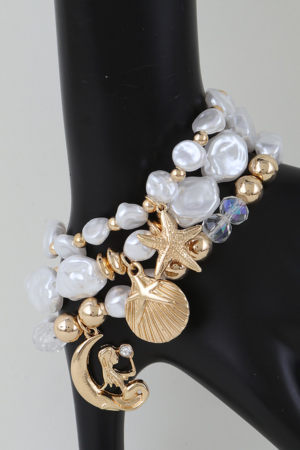 - * This is the Multi Under The Sea Charms Beaded Bracelet from H&D Accessories. It features a layered design with beaded strands and various under-the-sea charms like starfish, seashell, and a mermaid-themed pendant, creating a whimsical and coastal vibe. The combination of different beads and marine-inspired details adds a playful and exotic touch. You can wear it when going on a tropical vacation, attending a beach-themed party, or pairing it with a flowy maxi dress for a day of exploring seaside towns, instantly bringing a sense of oceanic charm to your look.