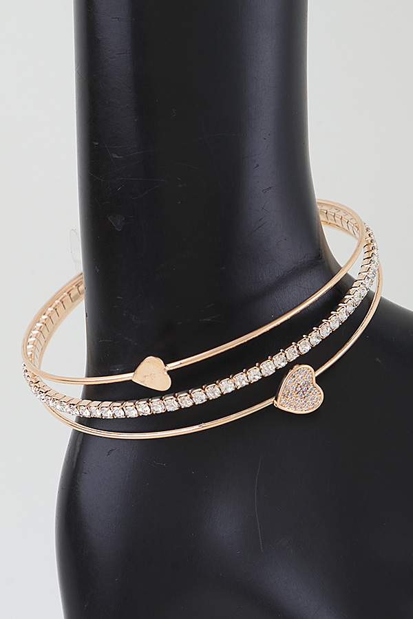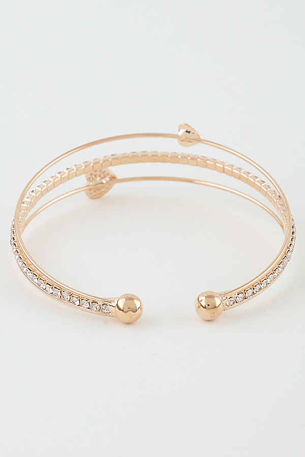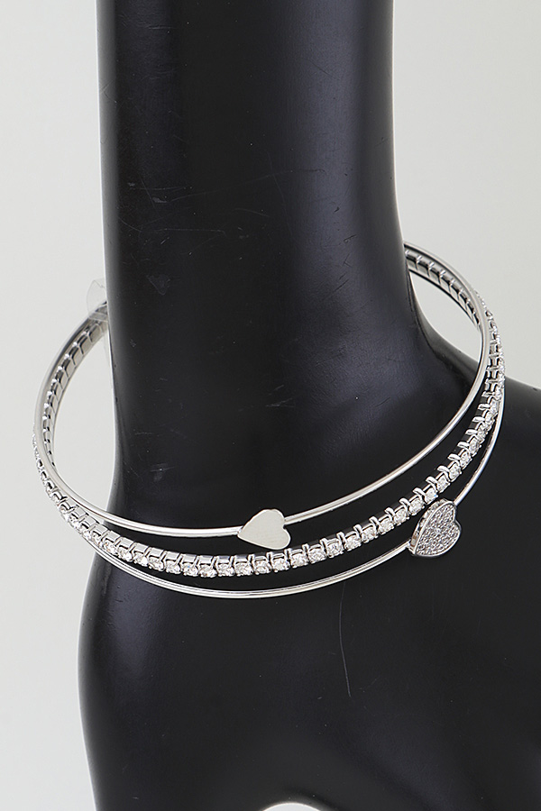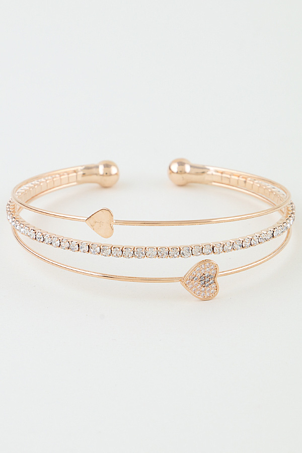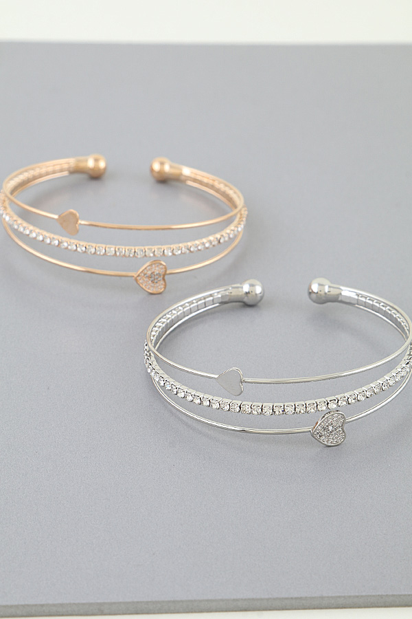 • * This Be My Heart Open Cuff Bracelet from H&D Accessories features a delicate, layered open-cuff design. It combines a sleek, smooth strand with a crystal-encrusted chain, accented by two heart charms: one polished and minimalist, the other pavĂ©-set with shimmering crystals for subtle contrast. The flexible, open structure ensures a comfortable, adjustable fit, while the mix of understated elegance and sparkling detail creates a versatile piece that transitions seamlessly from day to evening.