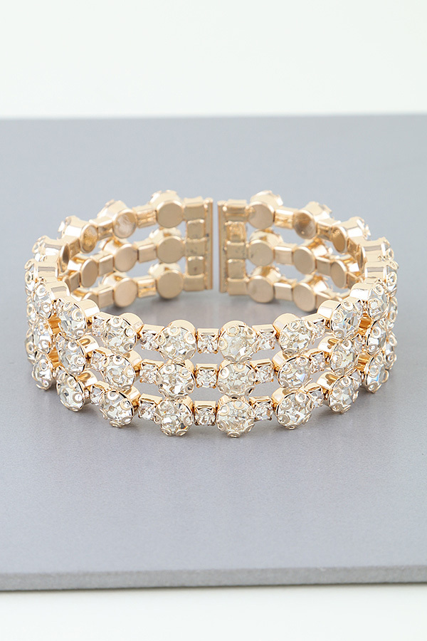 • * Discover the "Gilded Diamond Elegance" – a breathtaking bracelet featuring sparkling diamonds that capture the light beautifully. This Triple Bejeweled Cuff from H&D Accessories is the perfect blend of luxury and modern design, making it an essential addition to your jewelry collection.