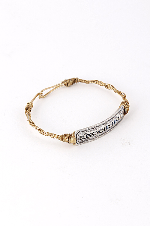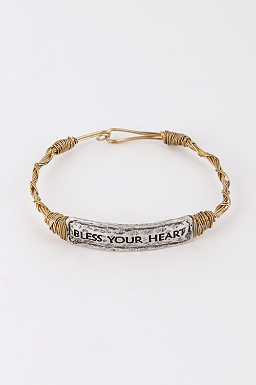 • * Antique Bless Your Heart ID Hinge Bracelet 5ECA6 * 2.6 x 2.2 x .4" approx.