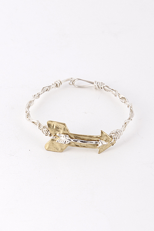 - * Two Tone Arrow Charm Hinge Bracelet 5ECA6 * 2.5 x 2.5 x .7" approx.