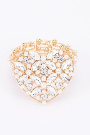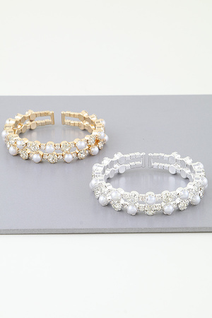 Faux Pearl Rhinestone Strethc Bracelet