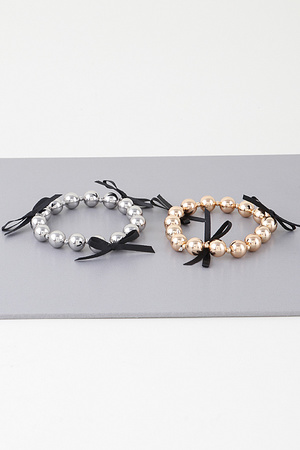 Shiny Triple Ribbon Wrapped Bead Bracelet