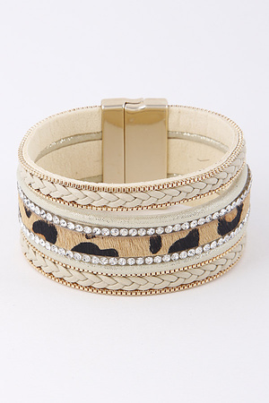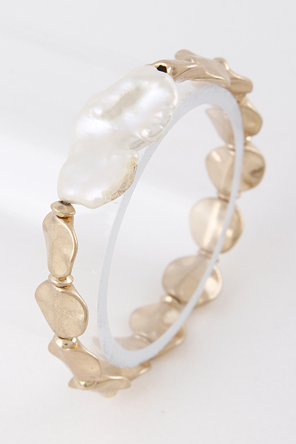 Open Cut Cuff Bracelet With Pearl & Chain Details 9ACB6