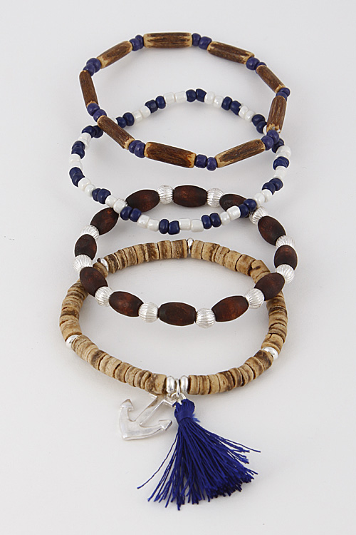 • * Multi Bead Bracelet With Anchor And Tassel 6FCB7 * 2.2 X 2.2 " approx.
