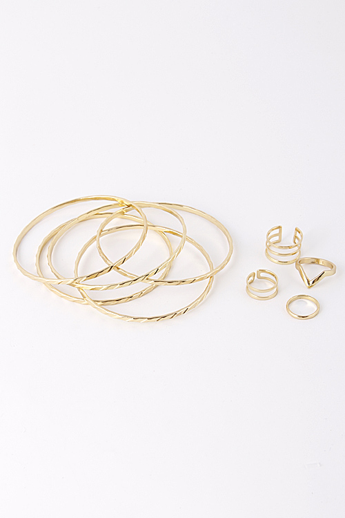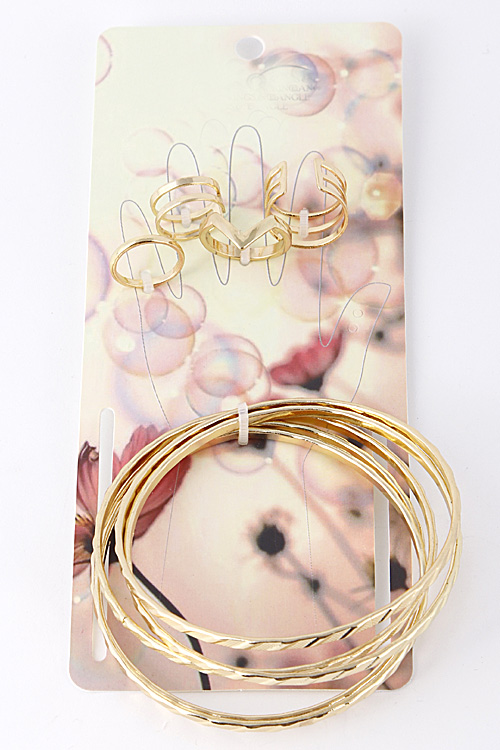 • * Dent Bangle Ring Set Bracelet 5ECB2 * One Size