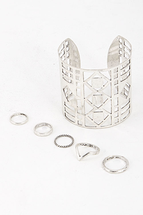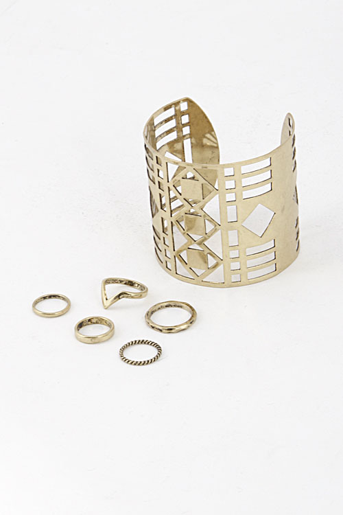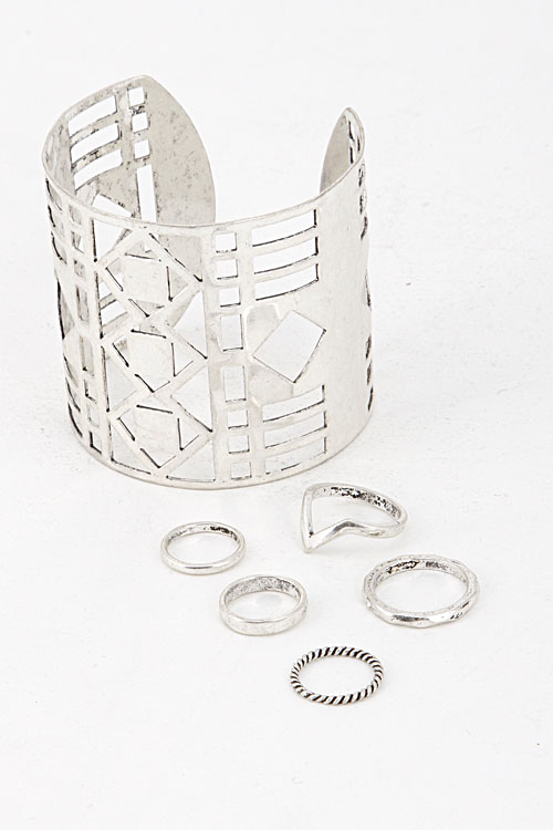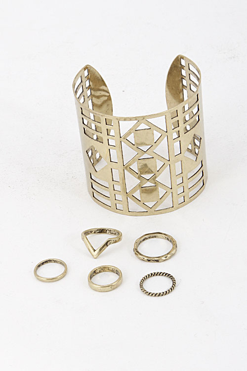 - * Layered Cut-Out Cuff Ring and Bracelet Set 5IAJ1 * 2.2 x 2.2" 0.7 to 0.4' approx.