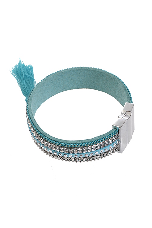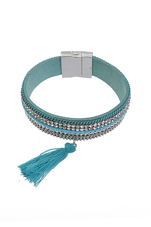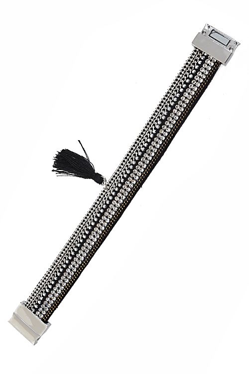 • * Rhinestone and Chain Bracelet with Tassel Charm * 7.75 X 0.75" approx.