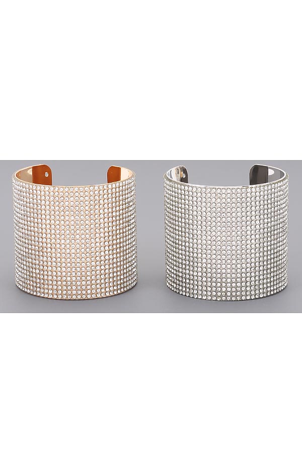 - * This is a Rhinestone Cuff. It has a wide, open - ended design with numerous rhinestones arranged in a grid pattern, creating a sparkling effect. From H&D Accessories, this cuff can add a touch of glamour to the wrist, suitable for dressing up outfits for special occasions or adding a bit of shine to everyday looks.