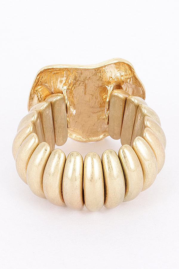 - * Introducing the "Alloy Casting Stretch Bracelet" – a stunning piece that radiates elegance with its large, hammered oval, gold-plated face. This bracelet is not just an accessory, it's a statement of luxury and sophistication that will elevate any outfit.