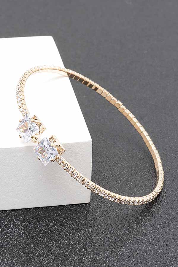 - * Introducing the "Square Radiance Bracelet" by H&D Accessories. This stunning gold bracelet features two exquisite square stones that catch the light beautifully, making it the perfect accessory for any occasion. Elevate your style and let your wrist shine with this elegant piece.