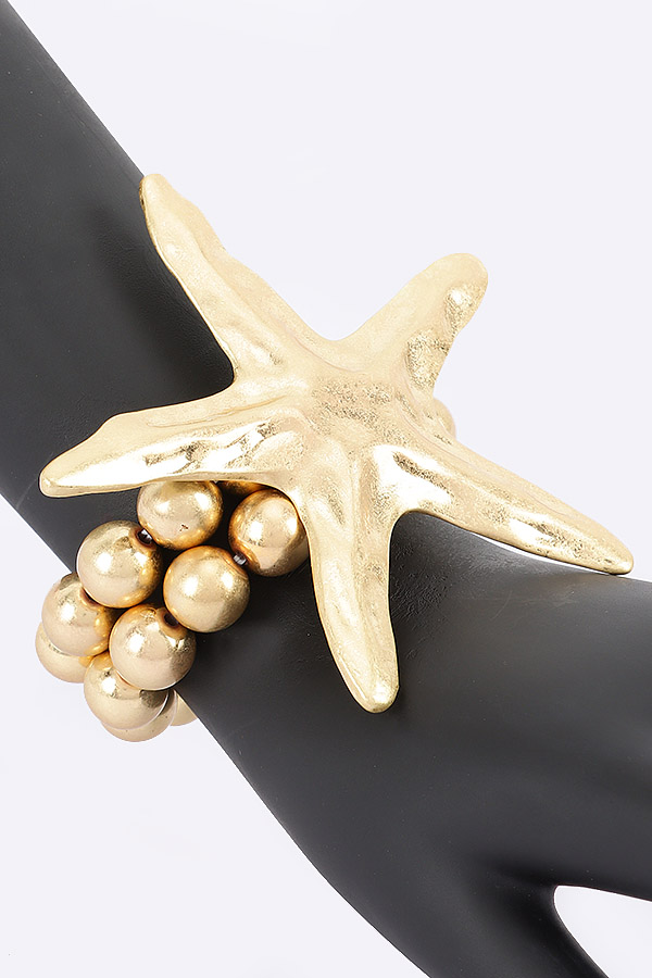 - * Introducing the "Pearl & Gold Starfish Elegance" bracelet, a stunning piece that beautifully combines the allure of gold with the timeless charm of pearls. This exquisite stretch bracelet from H&D Accessories is perfect for adding a touch of coastal sophistication to any outfit