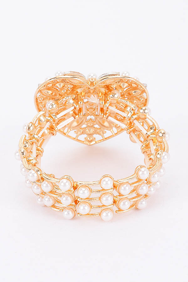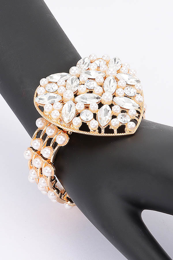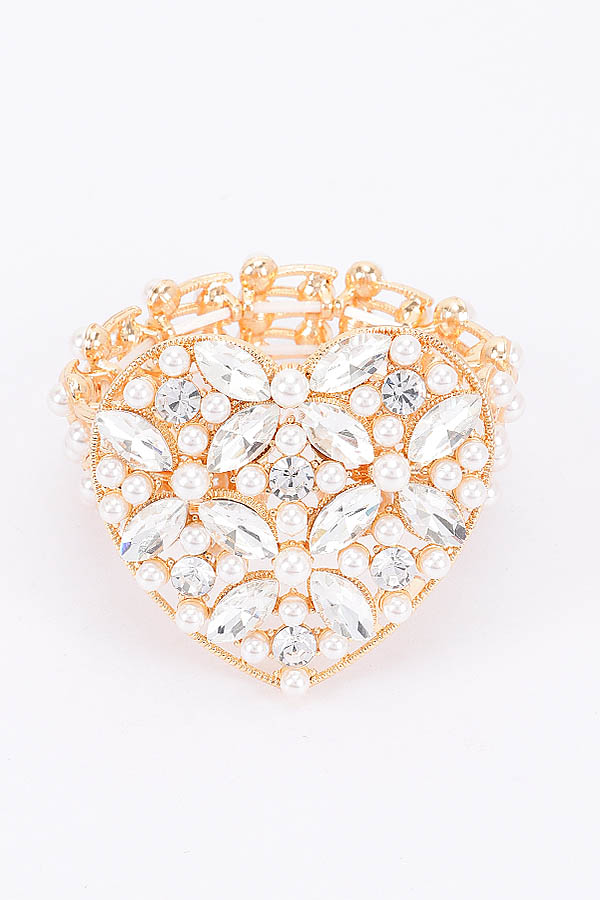 - * Faux Pearl Rhinestone Strethc Bracelet
