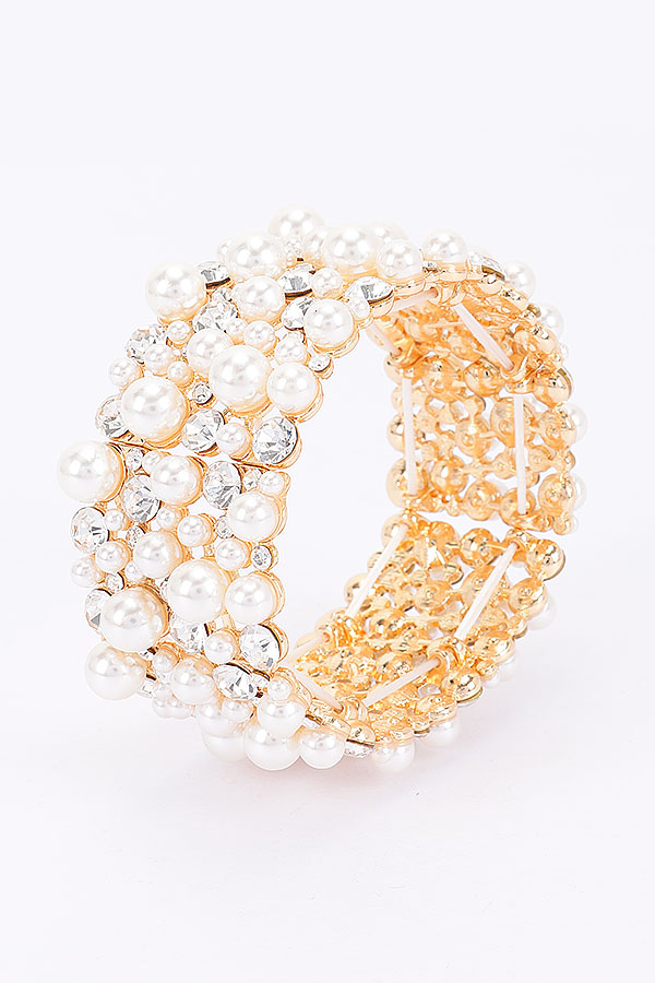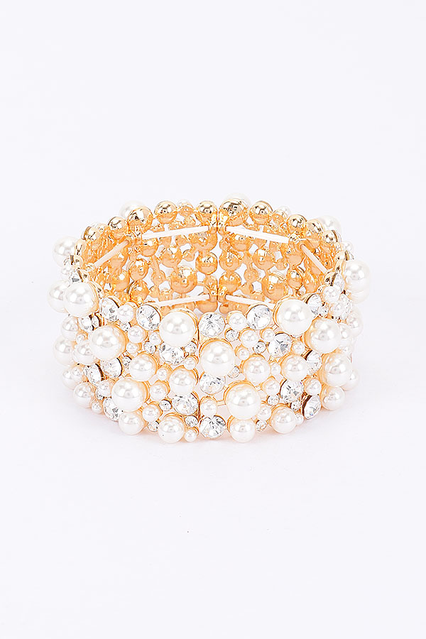 - * Faux Pearl Rhinestone Strethc Bracelet