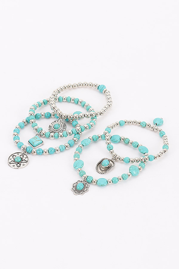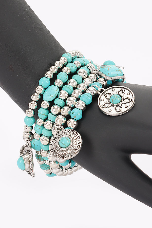 - * This set of Turquoise Bracelets from H&D Accessories includes multiple bracelets with diverse designs. They feature bead - like elements and various decorative charms. The assortment of styles makes them versatile for different looks.