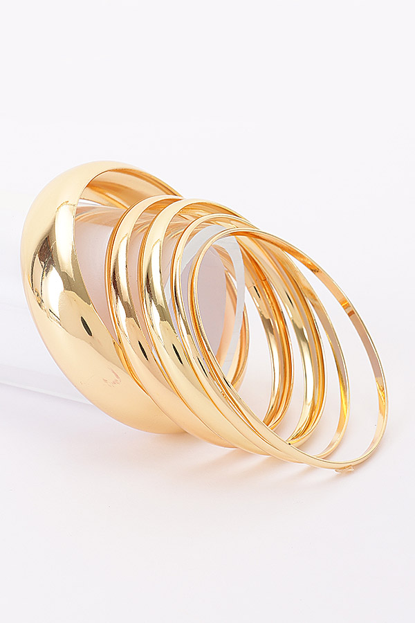 • * This Stacked Smooth Bangle Set from H&D Accessories consists of multiple sleek, rounded bangles designed to be worn together (or individually). It has a polished, minimalist appearance, giving off a versatile and timeless vibe.Ideal for pairing with casual tops, blouses, or office attire during work commutes, coffee meetups, or daily outings, adding a subtle polished touch.