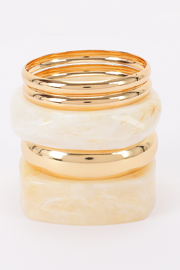 • * This Multi Mixed-Material Bracelet from H&D Accessories features a set of stacked pieces made with different textures (smooth polished elements and marbled-style components). It has a layered, textured appearance, giving off a trendy and eclectic vibe.Ideal for pairing with casual tops, blouses, or office wear during work commutes, coffee meetups, or daily outings, adding a subtle textured touch.