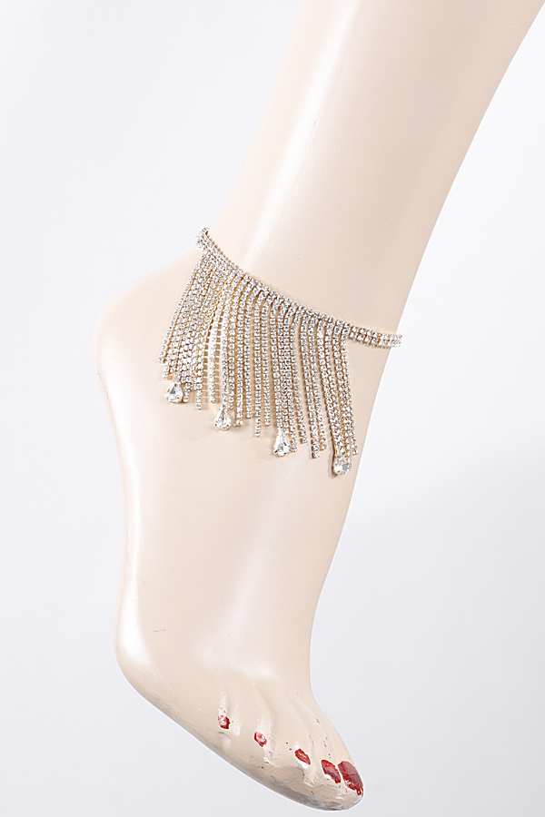 - * Rhinestone Teardrop Curtain Anklet