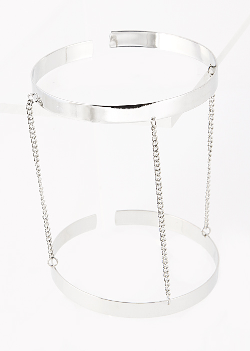 • * Double Cuff Bar Chain Connected Arm Bracelet 5FAE8 * 3" approx.