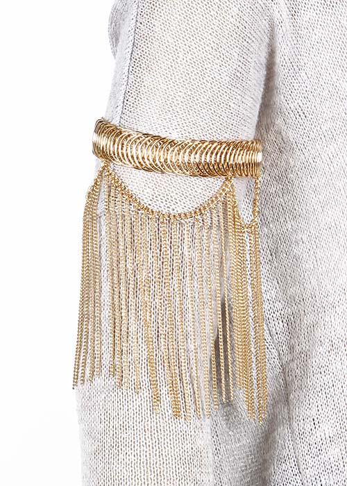- * Ring Connected Chain Draped Arm Cuff Bracelet 5FAE7 * 6" approx.