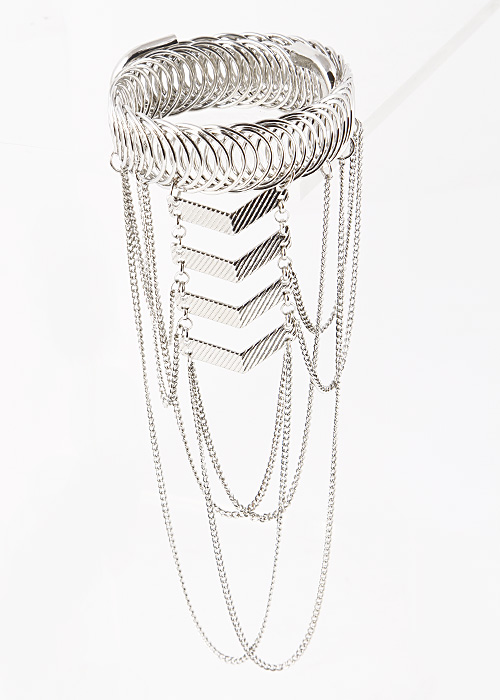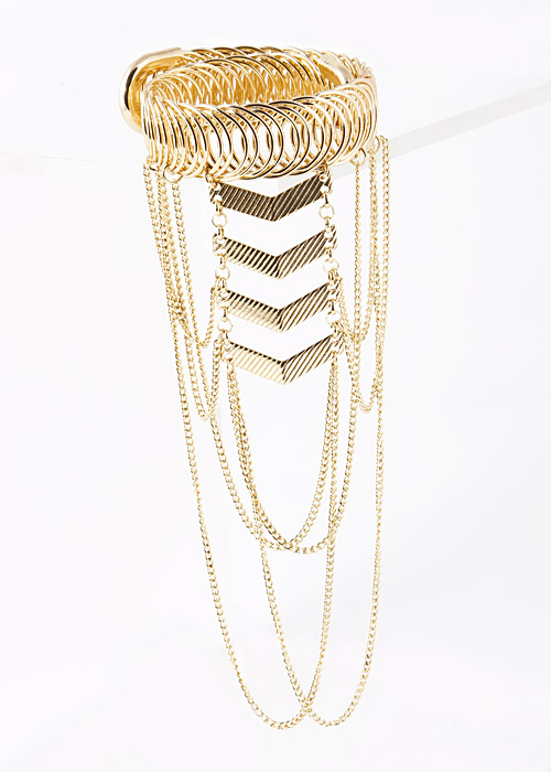 - * Chevron Plate Layered Chain Drop Arm Bracelet 5FAE13 * 6" approx.
