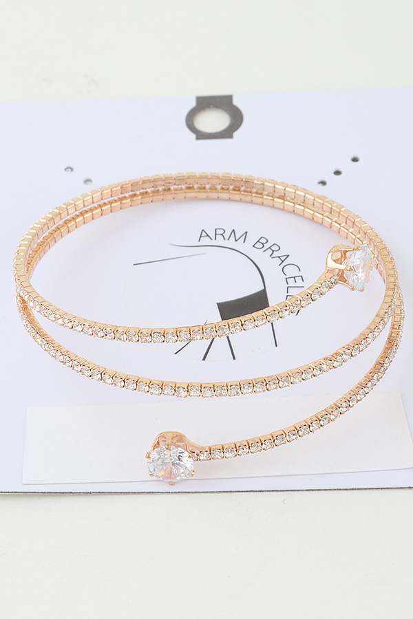 - * This is the Bejeweled Wrap Arm Bracelet from H&D Accessories. It features a unique, wraparound design with multiple intertwined bands. Each band is adorned with an array of sparkling jewels, and two larger gemstones accentuate the bracelet's curves. The craftsmanship is exquisite, creating a luxurious and eye - catching piece.