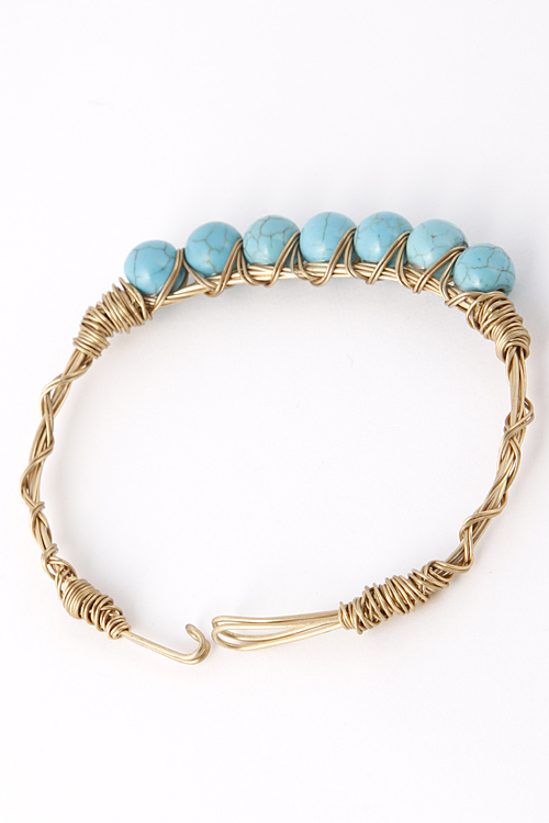 - * Turquoise Stone Bead Lined Up Wired Bracelet 5EBI1 * 2.5 x 2 x .25" approx.