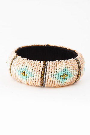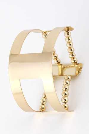 Stripe Cutout Metallic Cuff Bead Bracelet 5EAE8