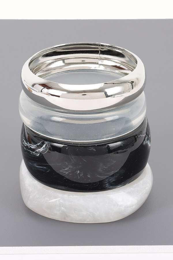 - * This is a set of Multi Mixed - Material Bracelet. From H&D Accessories, it integrates various materials. There are bracelets with a smooth, shiny metallic appearance, as well as those with translucent and patterned textures. These bracelets can be worn individually or stacked together to create different styles. They are perfect for adding a fashionable touch to your look when you're going to a weekend brunch with friends or attending a small art exhibition, making your outfit more eye - catching and unique.