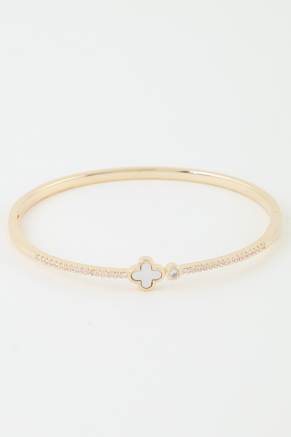 - * This Jeweled Clove Clasp Bracelet from H&D Accessories is a sophisticated and glamorous piece. The bracelet features a sleek, gold - toned band embellished with a row of sparkling jewels. The highlight is the clove - shaped clasp, which is adorned with a central white element and a small diamond - like accent, adding an elegant and refined touch.