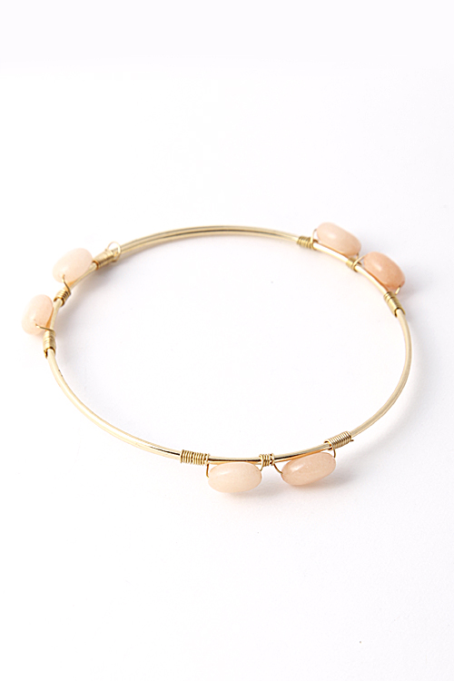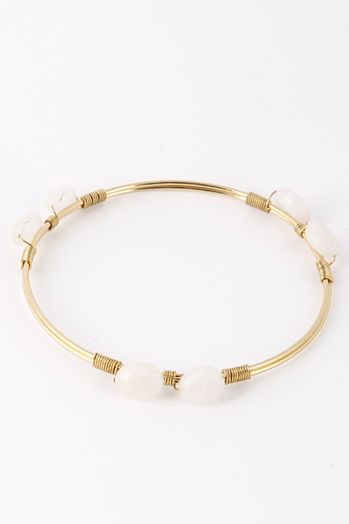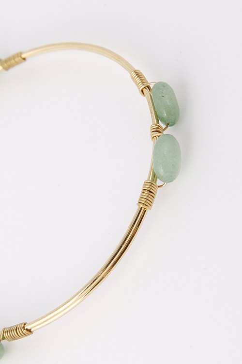 - * Double Stone Bead Wired Bangle Bracelet 5ECJ4 * 2.75 x 2.75" approx.