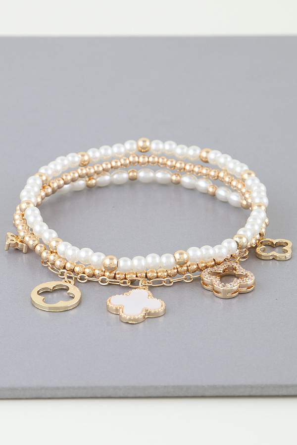 - * Unveil the beauty of the "Charmed Pearl Bracelet" from H&D Accessories. This captivating bracelet features a luxurious gold and white palette, complemented by exquisite pearls and charming accents. Make a statement with this elegant accessory that effortlessly blends timeless style with modern flair.