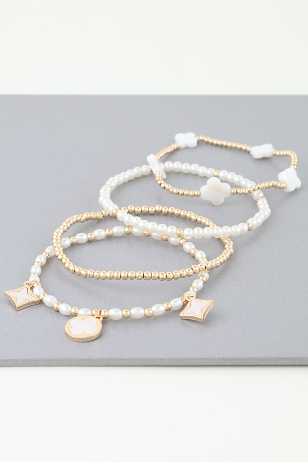 - * Introducing the "Golden Pearl Clover Charm Bracelet" from H&D Accessories. This exquisite piece combines the elegance of white, gold, and pearl beads, creating a stunning accessory that elevates any outfit. Perfect for both casual and formal occasions, this bracelet is a must-have for those who appreciate timeless beauty.
