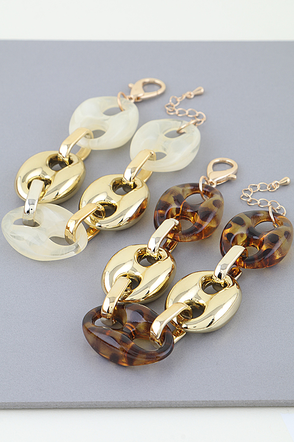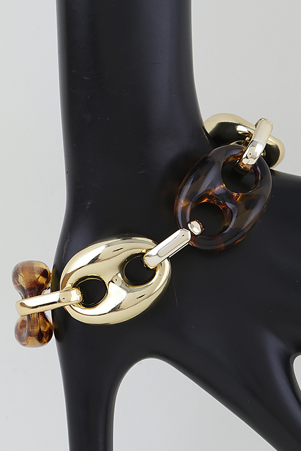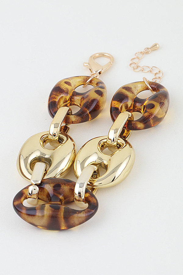 • * This Polished Tortoise Mariner Chain Bracelet from H&D Accessories features a bold link design that blends smooth, glossy elements with classic tortoise-patterned accents. It includes an adjustable extender chain for a customized fit, making it perfect for elevating both everyday casual looks and evening outfits. The versatile piece effortlessly transitions from office days to weekend brunch dates, adding a refined yet playful touch to any ensemble.