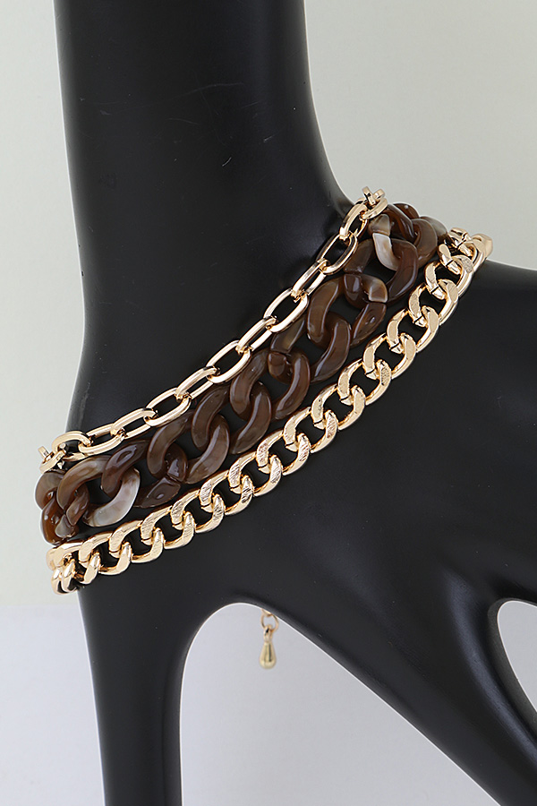 • * This is the Triple Stone Link Chain Bracelet, a textured layered accessory from H&D Accessories. It features three interwoven link chains—including a stone-patterned style—for a rich, dimensional look, and comes with an adjustable clasp to ensure a comfortable fit. Ideal for adding a modern touch to both casual and semi-dressy outfits, it works perfectly for scenarios like a brunch with friends, a work presentation, or a evening walk. Its mixed-chain design adds depth to simple tops or complements more polished ensembles, making it a versatile piece that elevates various daily and leisure moments.