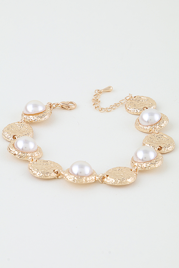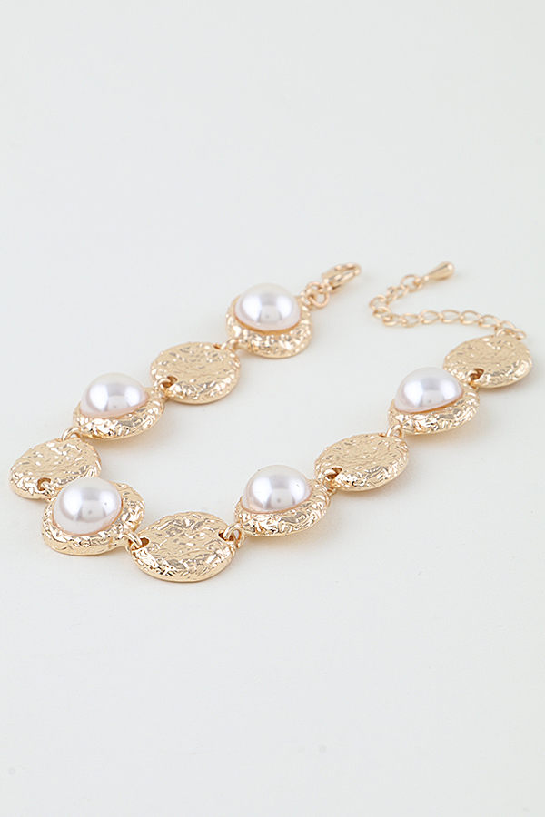 • * Hammered Pearl Charm Beaded Bracelet