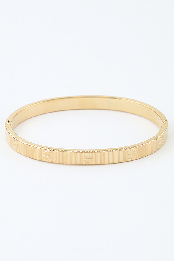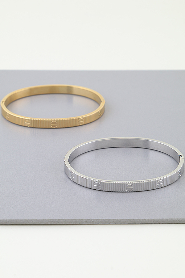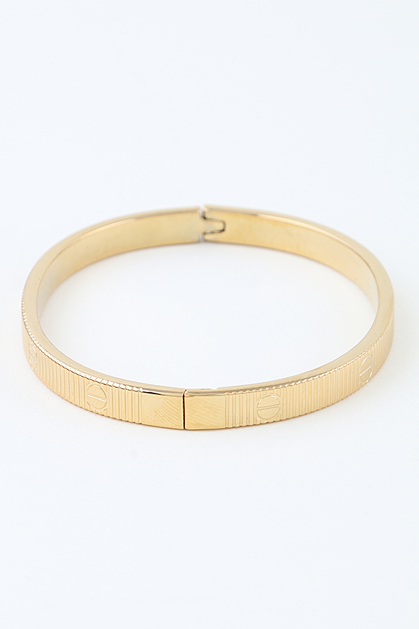 • * This Modern Nail Ribbed Cuff Bracelet from H&D Accessories features a slim, streamlined band with a textured ribbed surface and subtle engraved details, finished with a secure hinged closure. It pairs effortlessly with minimalist workwear or adds a sleek accent to date-night ensembles, making it a go-to for understated, contemporary style.