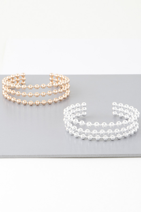• * Introducing the "Wide Triple Beaded Cuff Bracelet" – a stunning wide triple beaded bracelet that embodies sophistication and style. Perfectly designed to adorn any wrist, this exquisite piece from H&D Accessories will elevate your accessory game and make a bold statement.