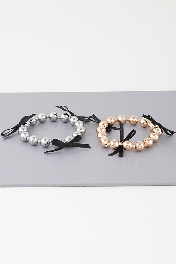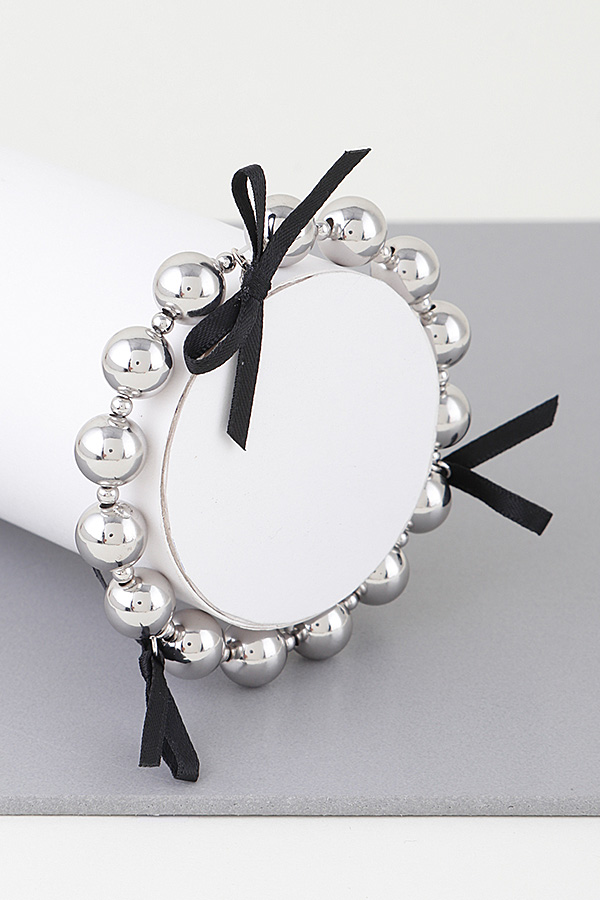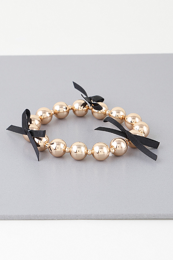 • * Shiny Triple Ribbon Wrapped Bead Bracelet