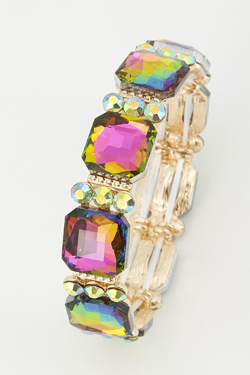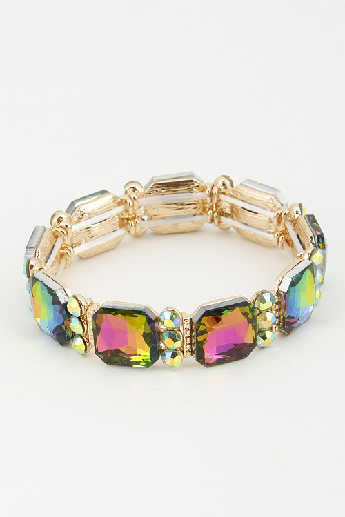 • * Rectangle Rhinestone Stretch Bracelet 5JBD5 * 3X3" approx.