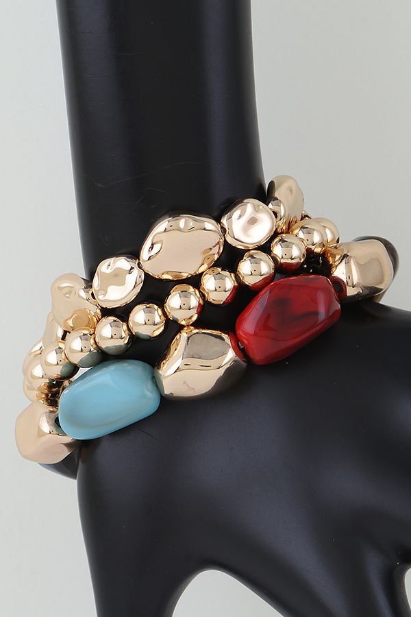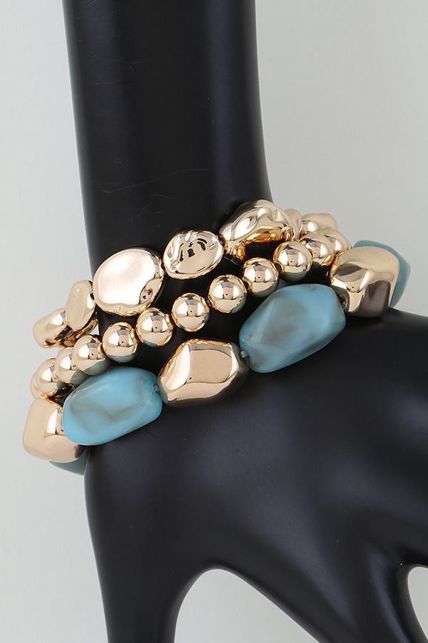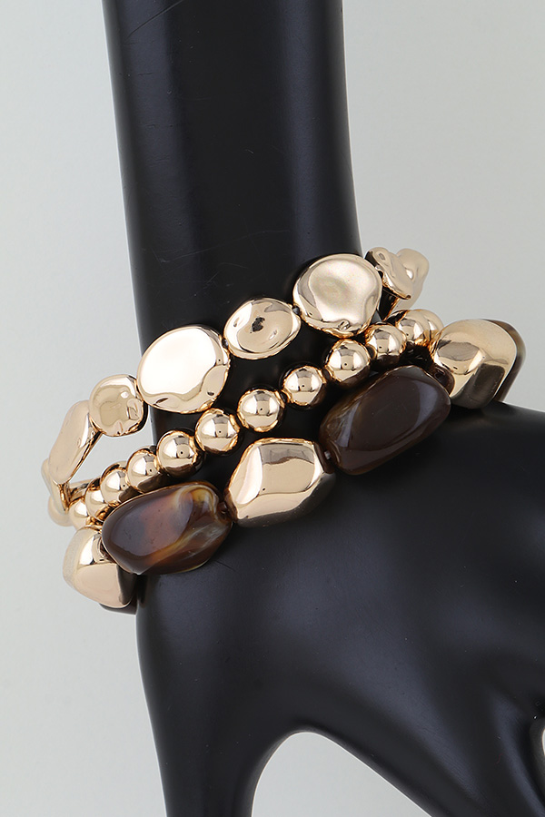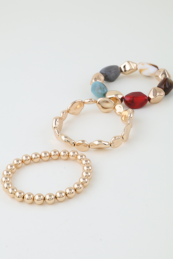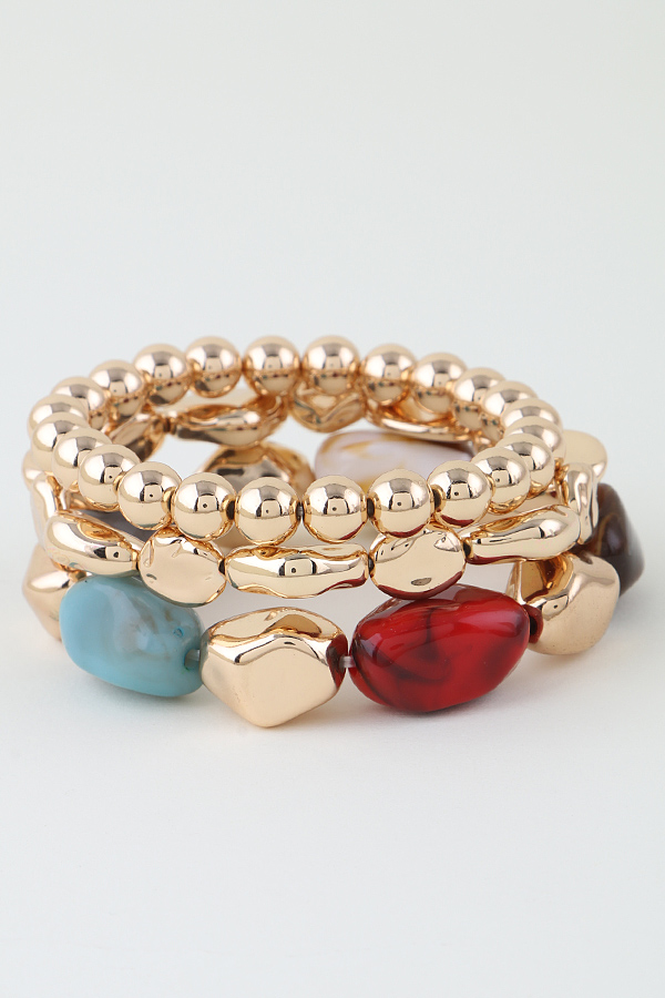 - * This is a set of Triple Stone Beaded Bracelet from H&D Accessories. Featuring a combination of different textured beads and stone-like elements, they offer a versatile and stylish look. They are perfect for various scenarios: you can wear them when going to a casual dinner with friends to add a touch of elegance to your outfit, during a day at the office to elevate your professional look, or even when attending a small social gathering to showcase your unique taste in accessories. These bracelets not only serve as fashionable pieces but also provide a layered and chic aesthetic, making them a great addition to any wardrobe for both everyday wear and special occasions.
