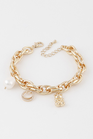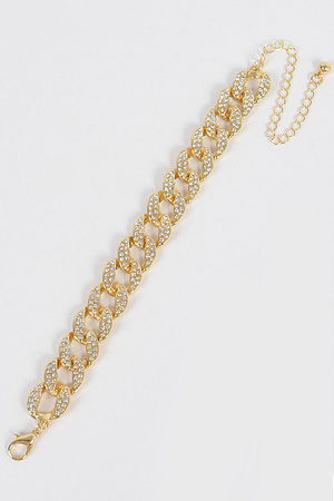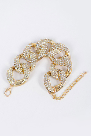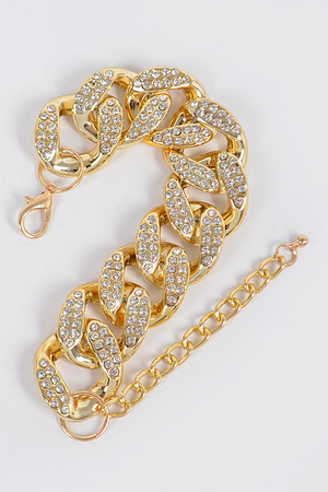 Rhinestone Embedded Safety Pin Chain Bracelet