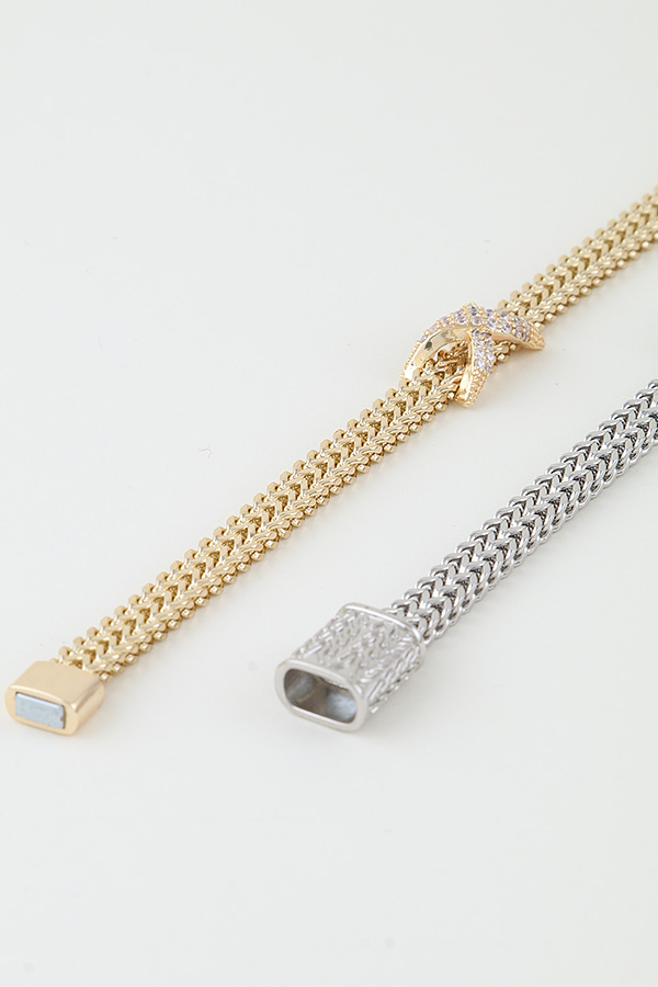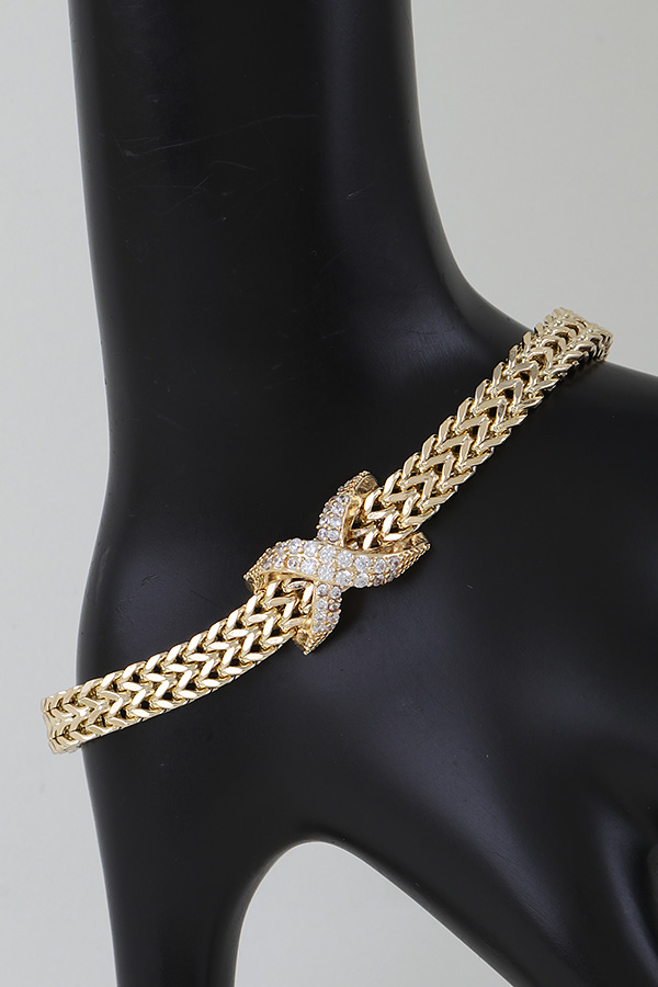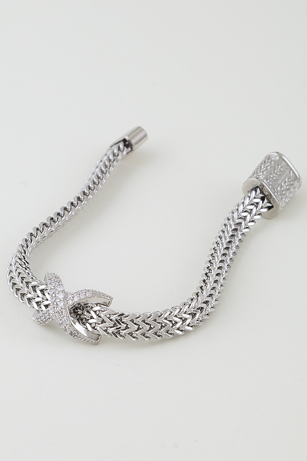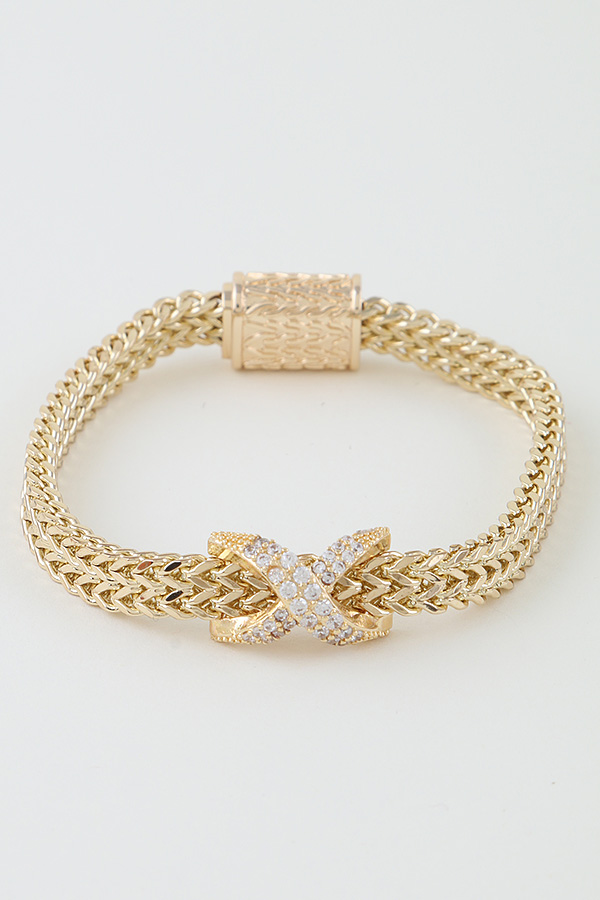 - * This is the Jeweled X Chain Bracelet from H&D Accessories. It features an intricately designed chain with a sparkling jeweled X motif, exuding a sense of luxury and sophistication. The bracelet is equipped with a detailed clasp, ensuring both security and style. You can wear it when attending a formal dinner party, going to a business meeting, or simply pairing it with your everyday office attire, adding a glamorous touch to any look.