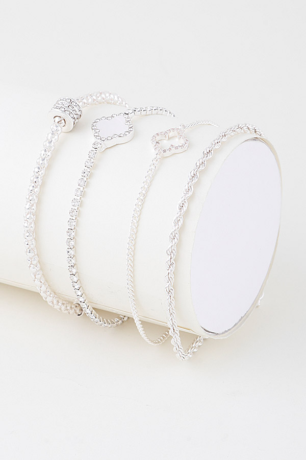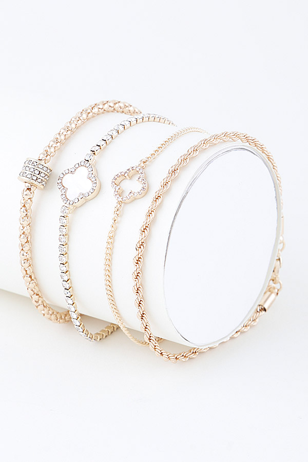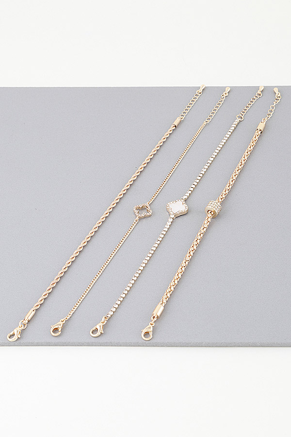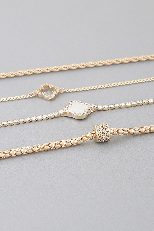 - * Multi Bejeweled Open Clover Chain Bracelet