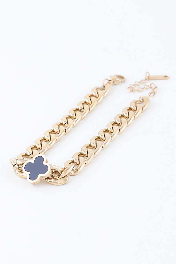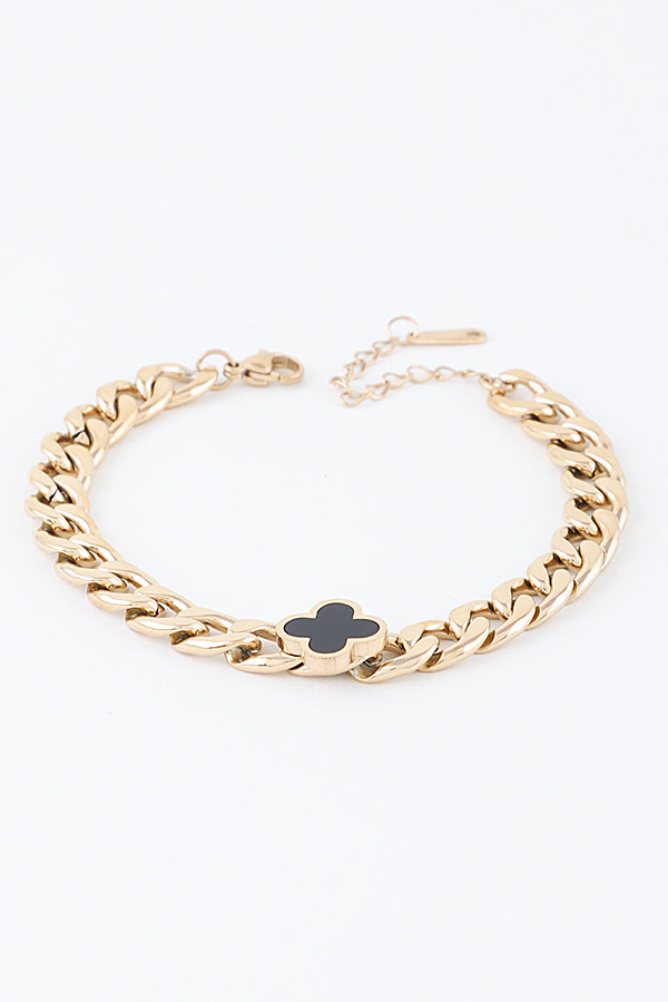 • * Modern Shiny Clover Curb Chain Bracelet