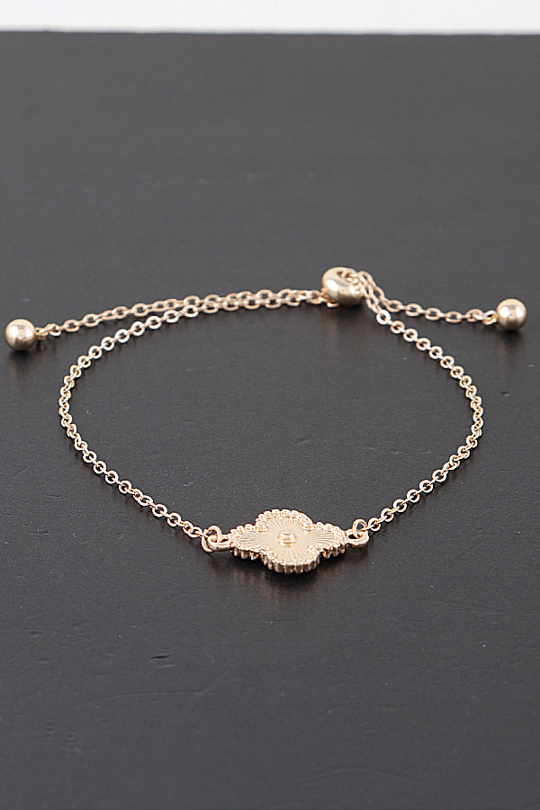 - * Introducing the "Shiny Clover Adjustable Bracelet" – a stunning gold bracelet adorned with a charming clover, designed to add a touch of love and sophistication to any outfit. This piece from H&D Accessories is not just an accessory, it's a statement of affection and style.