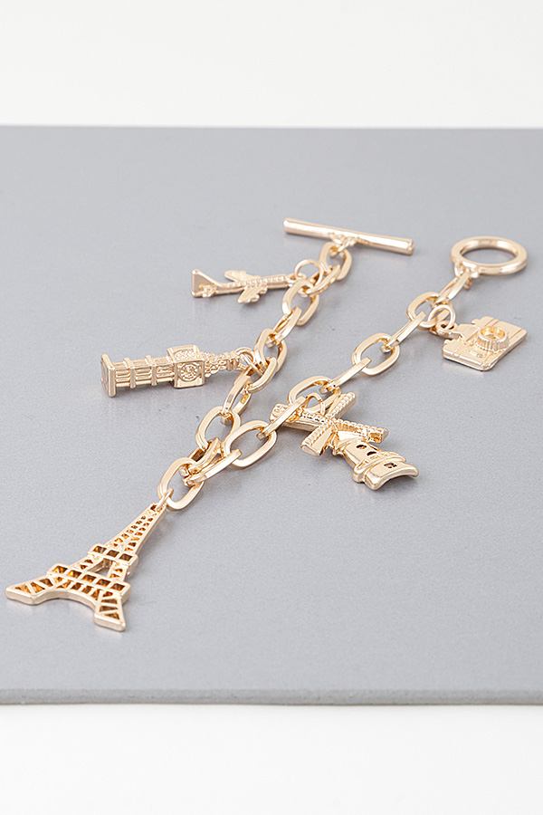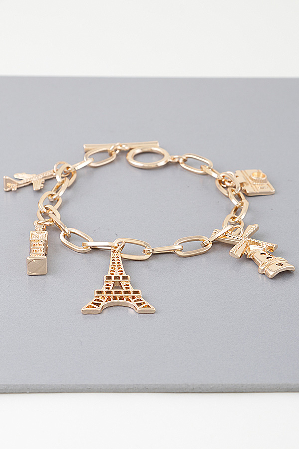 • * Introducing the "Living in Paris Chain Bracelet" – a stunning gold bracelet that beautifully captures the essence of the City of Lights. Adorned with a delicate Paris skyline and enchanting charms, this piece is perfect for those who cherish the romance and elegance of Paris. Elevate your accessory game with this exquisite bracelet from H&D Accessories.