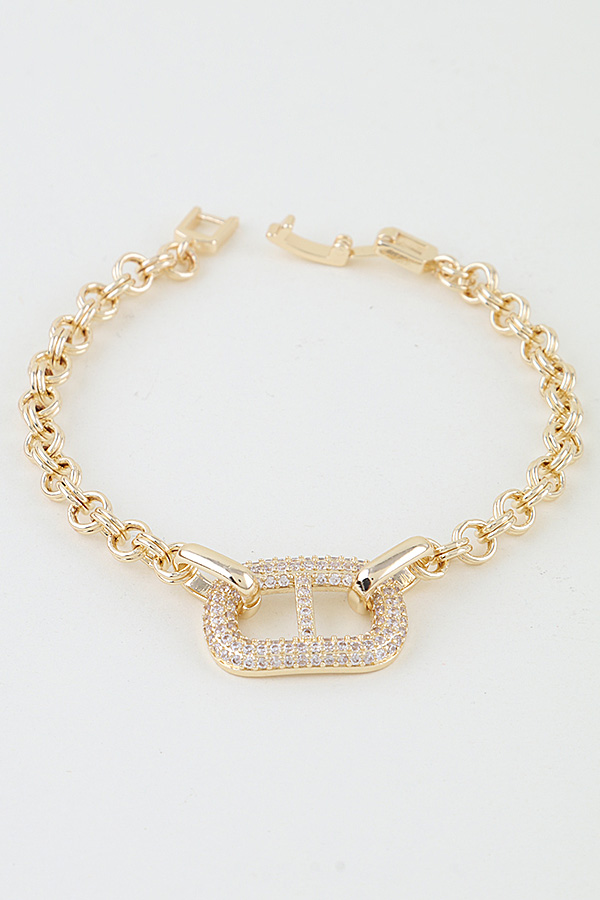 - * This Bejeweled Mariner Chain Bracelet from H&D Accessories features a classic mariner-style chain with a prominent, stone-encrusted rectangular focal charm at its center. Its polished, stone-adorned design adds a glamorous, refined touch to any ensemble. Wear it to elevate a tailored blazer for a professional office look or to complement a minimalist dress at a cocktail party. The secure clasp ensures easy wear, making it a versatile staple for both casual and special occasions.