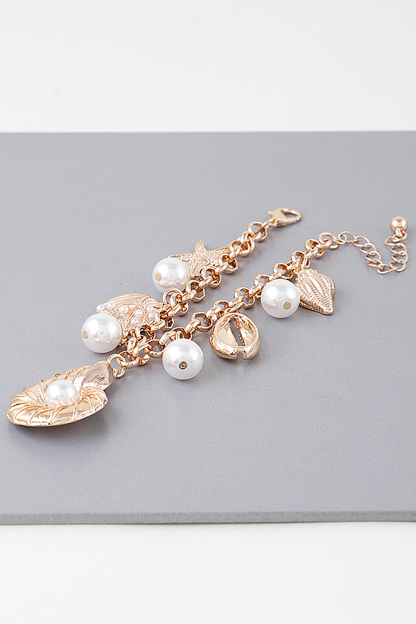 • * Introducing the "Pearl Tide Bracelet" – a stunning blend of elegance and nature, featuring lustrous pearls and delicate shells set in a radiant gold design. This exquisite piece from H&D Accessories captures the essence of the ocean, making it the perfect accessory for any occasion.