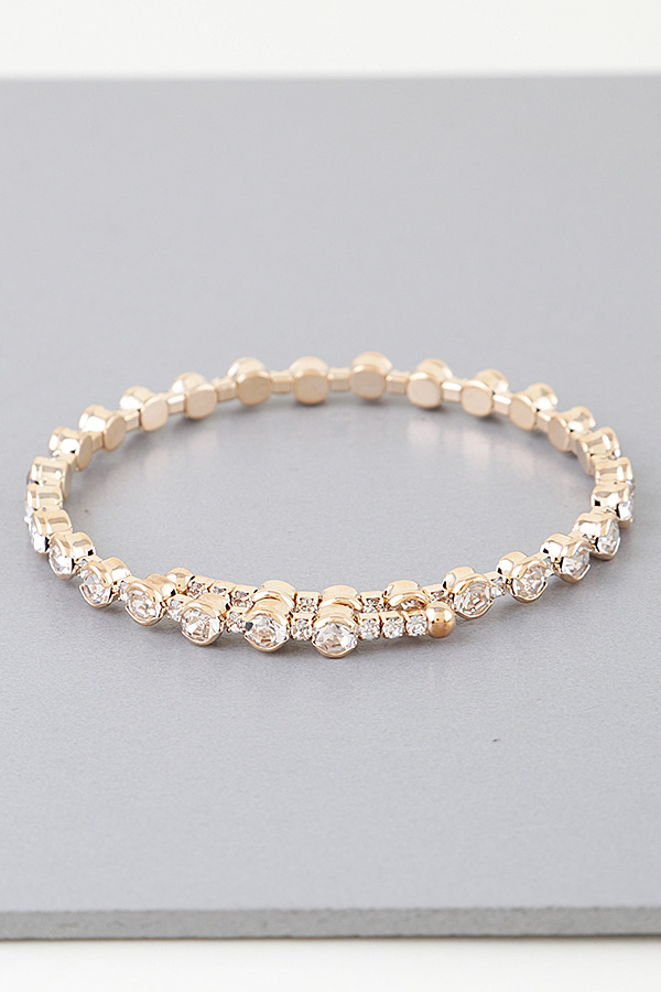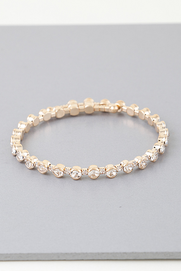 • * Introducing the Warp Around Jeweled Bracelet by H&D Accessories, where luxurious gold meets the brilliance of rhinestones. This stunning piece is designed to wrap around your wrist, showcasing a captivating blend of sophistication and glamour that will elevate any outfit.